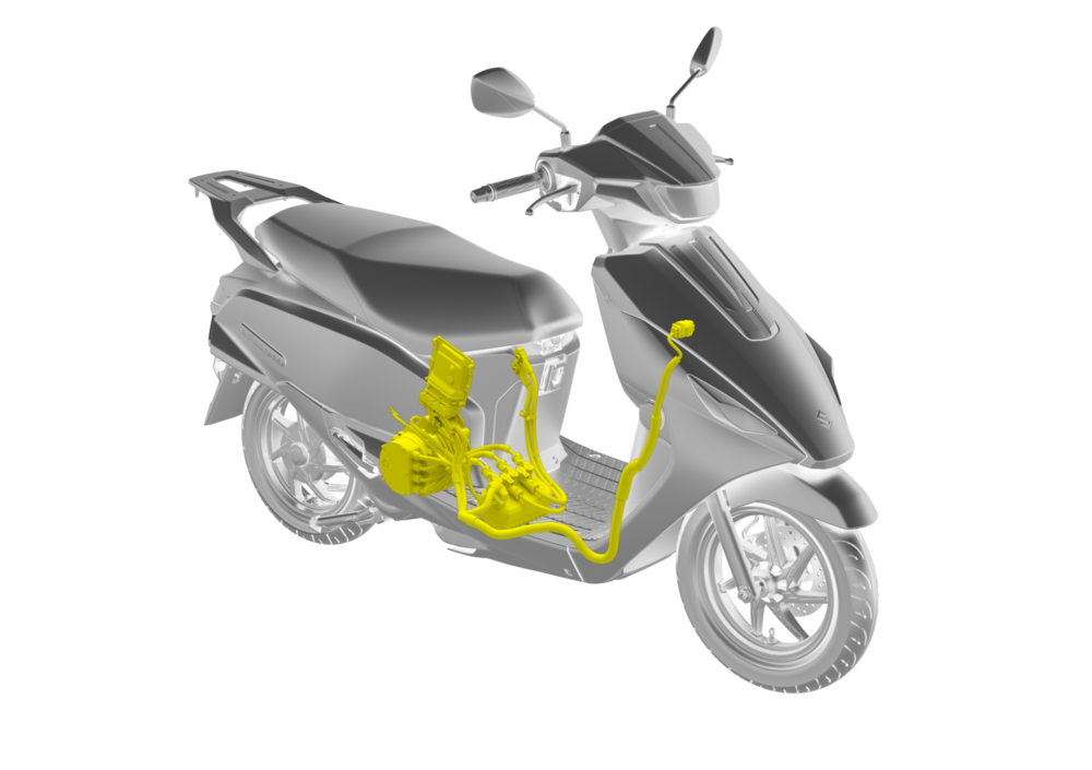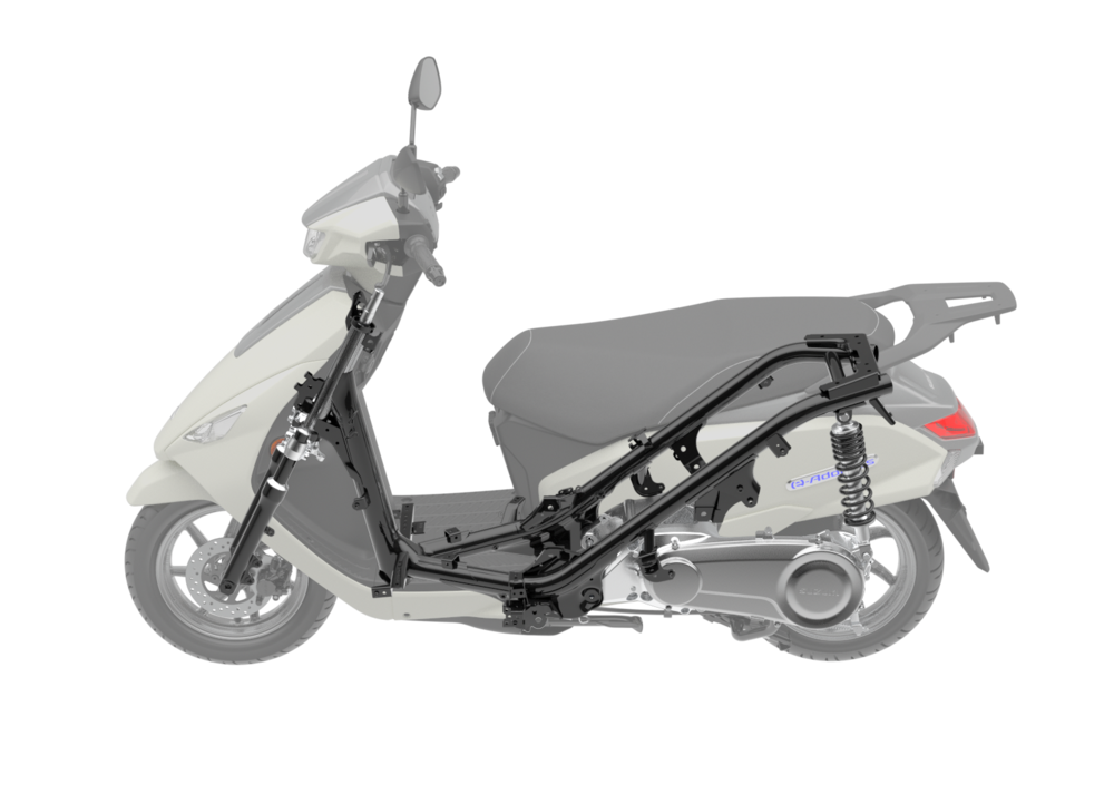 La batteria al litio-ferro-fosfato garantisce un buono spazio di stivaggio sotto la sella e permette un'accelerazione silenziosa e fluida, tipica dei veicoli elettrici. Il nuovo telaio leggero e altamente rigido facilita la manovrabilità, offrendo un'ottima agilità.