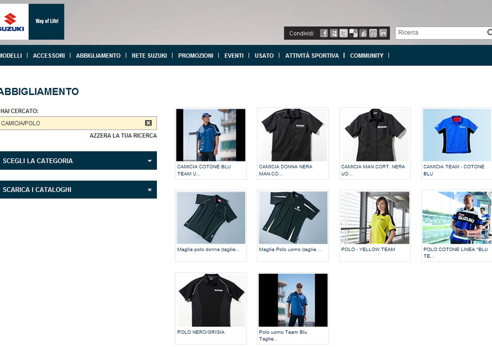 Inoltre, l'utente ha a disposizione un tool per condividere con gli amici, attraverso i social network preferiti, la passione per il mondo Suzuki.