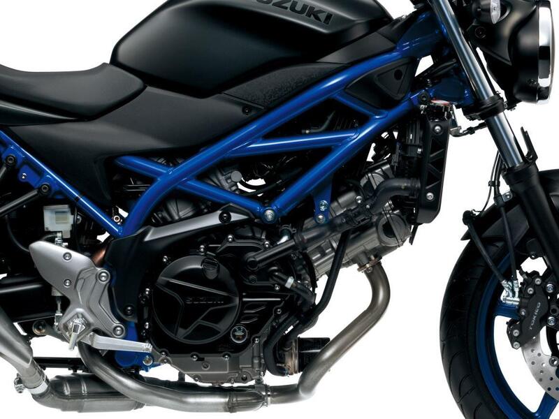 Il motore V2 di 90° e di 645 cc – ricordiamo che questa Suzuki è la sola media stradale rimasta a portare avanti la raffinata motorizzazione bicilindrica a V - ha distribuzione bialbero e quattro valvole per cilindro, doppia candela di accensione, corpi d'iniezione con doppia valvola a farfalla, sistema easy start e Low RPM Assist. Ho ottenuto l’omologazione Euro 5 senza rinunciare alle prestazioni che sono confermate in 76 cavalli di potenza massima a 8.500 giri in 64 Nm di coppia massima. Il consumo medio nel ciclo WMTC è di 26 km/litro.