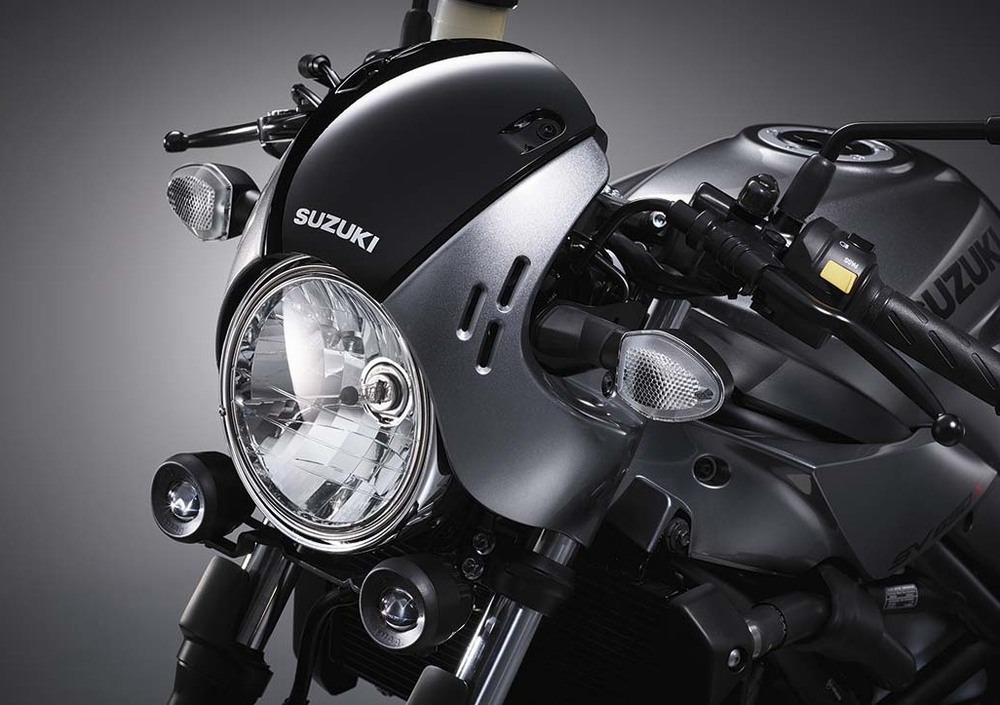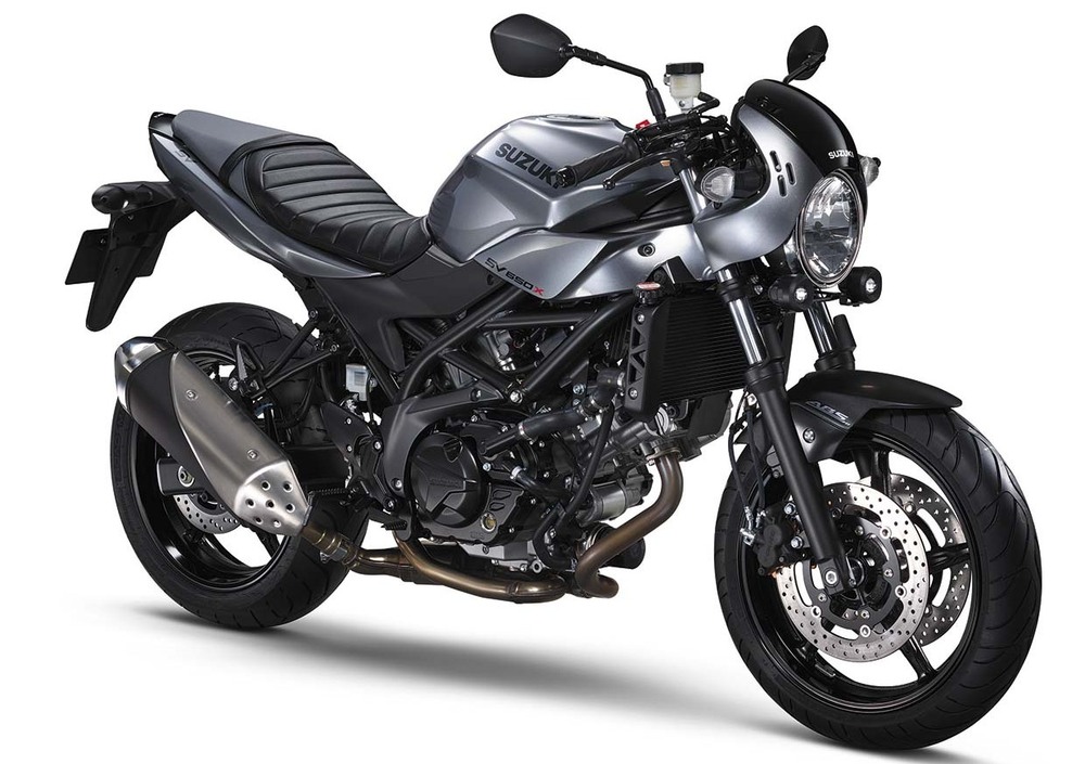 La nuova “X” è stata presentata da Suzuki come una nuova proposta neo-rétro che mescola il design tradizionale con la tecnica moderna di motore e telaio. Si tratta in pratica di un allestimento dell'ultima SV650, la nota bicilindrica a V da 76 cavalli e 195 kg (in vendita a 6.490 euro) rispetto alla quale la X monta un manubrio basso, un piccolo cupolino dal profilo arrotondato, nuove coperture per il telaio sotto il serbatoio, una coppia di faretti fissati alla piastra inferiore di sterzo, un diverso rivestimento – trapuntato - della sella, e naturalmente una speciale colorazione silver. La SV650X sarà esposta anche a Eicma.