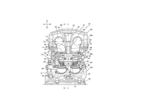 Nell'agosto del 2020 abbiamo scritto di un brevetto depositato da Suzuki all'inizio dello stesso anno che riguarda appunto un nuovo bicilindrico parallelo (nelle foto qui sopra).