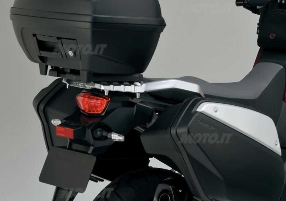 I 29 litri di capienza della valigia laterale sinistra e i 26 litri di quella posta sul lato destro permettono una possibilità di carico elevata, alla quale si aggiungono i 35 litri del bauletto posteriore (può contenere un casco integrale). Il dimensionamento complessivo e la conformazione dei componenti sono frutto di numerosi test effettuati per limitare al massimo l'influenza sulla maneggevolezza e sulla manovrabilità della moto - garantisce Suzuki - e per non essere fonte di attrito durante la guida grazie alla loro larghezza inferiore a quella del manubrio.