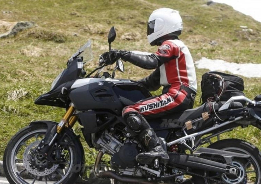 Il nuovo V-Strom 1000, una delle novità più attese di Suzuki, è stato immortalato durante un giro di collaudo sulle Alpi tedesche. Dagli scatti si intuiscono già alcune caratteristiche della maxi-enduro stradale: Cerchi da 19 e impostazione che punta al confort; linee snelle ma che non rinunciano a dare un senso di protezione. Il modello "spiato" in prova, nelle linee, non è molto dissimile da quello attuale.