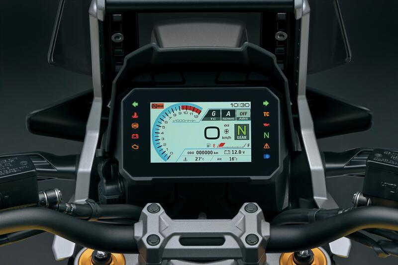 Nuovo è il display TFT a colori da 5 pollici, il telaio in lega di alluminio è stato irrobustito nella zona posteriore e il due cilindri a V di 90° di 1.037 cc eroga sempre 107 cavalli a 8.500 giri; la coppia massima è di 100 Nm a 6.000 giri.