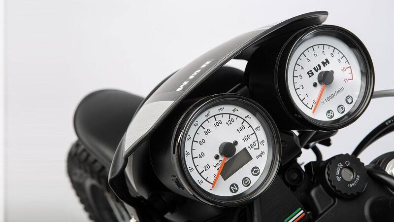 Lo stile è quello delle moto da Regolarità delle famose Sei Giorni del passato, i colori sono il verde e il grigio abbinati alla sella marrone scuro.