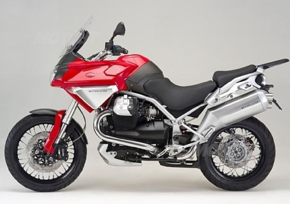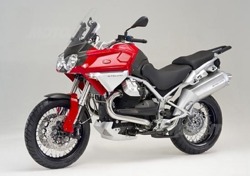 Esordisce a Eicma 2007 l'attesissimo maxi-enduro del marchio dell'aquila. I 1200 cc del nuovo motore “quattrovalvole”, configurato per la nuova Stelvio, erogano ben oltre 100 cv di potenza e si distinguono per la grande coppia che ne fa una moto versatile adatta a tutti gli usi e tutti i terreni dell'avventura. Grandi spazi, grandi viaggi si aprono davanti al cupolino regolabile e integrato col gruppo serbatoio. Il telaio completamente nuovo si accoppia al forcellone monobraccio, che integra la trasmissione finale a cardano Carc, e alla forcella a steli rovesciati da 50 mm con attacco radiale delle pinze freno. I cerchi ruota a raggi da 19” e 17”, anodizzati nero, che accolgono grandi pneumatici, il telaio già predisposto con gli attacchi per le borse, la sella regolabile su tre posizioni parlano di una moto pronta a viaggiare verso ogni destinazione.