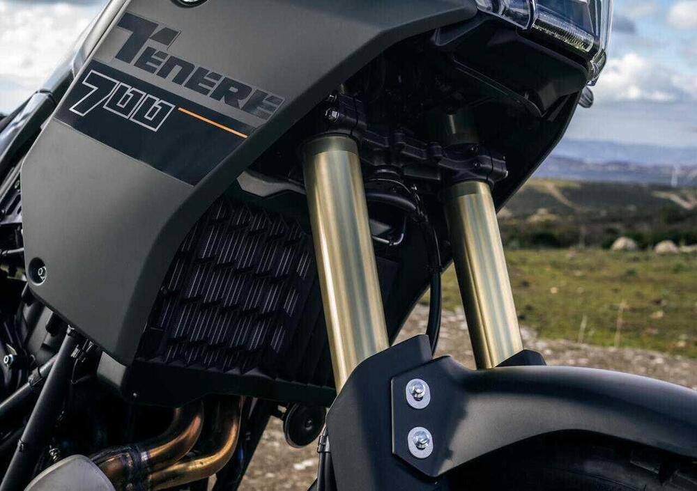 La Ténéré 700 Extreme Edition è la versione più orientata al fuoristrada tra le due novità: la ciclistica vede sospensioni KYB completamente regolabili, con 20 mm di escursione in più, oltre a rivestimento Kashima sugli steli forcella.