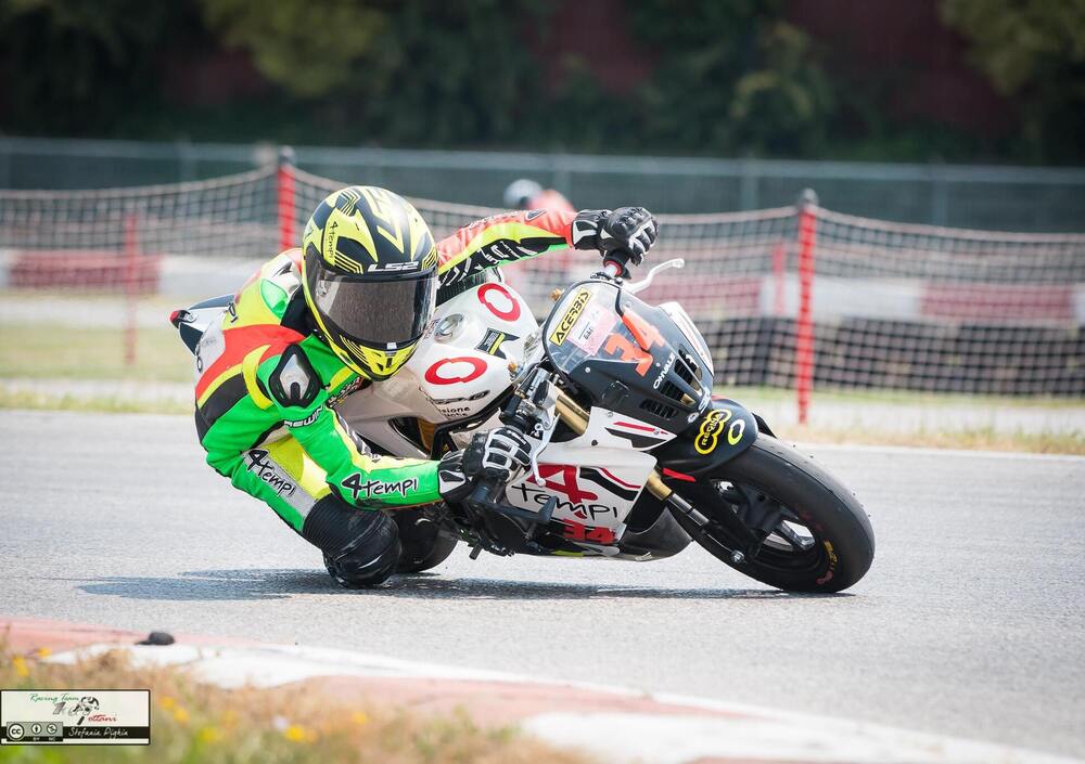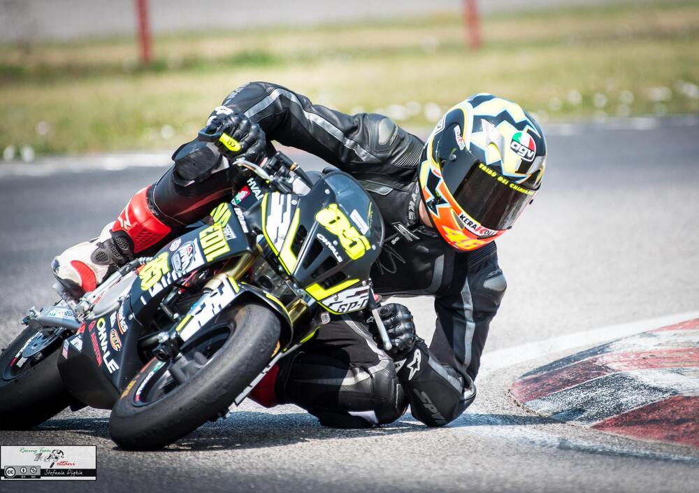 Nonostante qualche problema di accensione, un turno di cronometrate saltato per via di una verifica tecnica al nostro motore andata un po' troppo per le lunghe e qualche altro intoppo, come un bel "botto" spettacolare durante le Q1 per una "incomprensione di traiettorie" con l'amico e lettore Francesco Mora, ecco che riusciamo a ottenere l'undicesimo tempo assoluto in griglia (su 19 partenti) e il 4° di classe. Non male, pensiamo. L'amico Jonathan, team manager AKM e tecnico, coadiuvato dal fido Mariano Polloni, secondo tecnico della nostra squadra, fanno l'impossibile per affidarmi una Ohvale perfetta. Per la gara interveniamo alzando di qualche millimetro il retrotreno (dati numerici top secret), nuove pastiglie freno anteriori, e un rapporto finale leggermente più lungo per cercare di farla scorrere maggiormente senza avere la tentazione di attaccarsi ai freni come si farebbe con una moto di gorssa cilindrata.