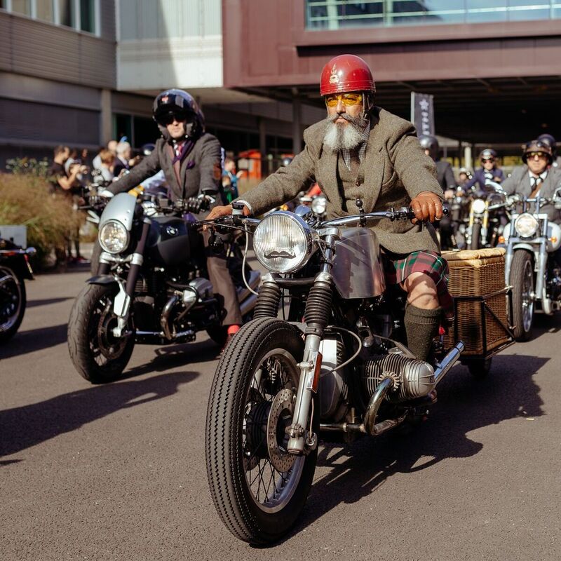 Signore e Signori elegantemente vestiti, che guidano le loro Café Racer, Bobber, Classic, Tracker, Scrambler, Old School Chopper, Modern Classic, Sidecar, Classic Scooter e Brat Styled nelle tante città del pianeta che hanno aderito alla causa, per sensibilizzare e finanziare la ricerca.