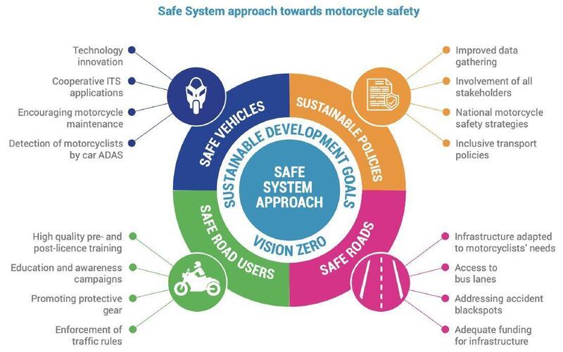 Il documento programmatico descrive anche le modalità in cui il settore motociclistico sta collaborando con altri attori coinvolti a livello nazionale ed europeo per promuovere l’implementazione di politiche dei trasporti che contemplino la sicurezza dei motociclisti.