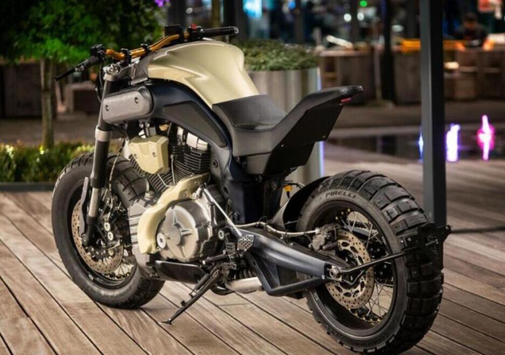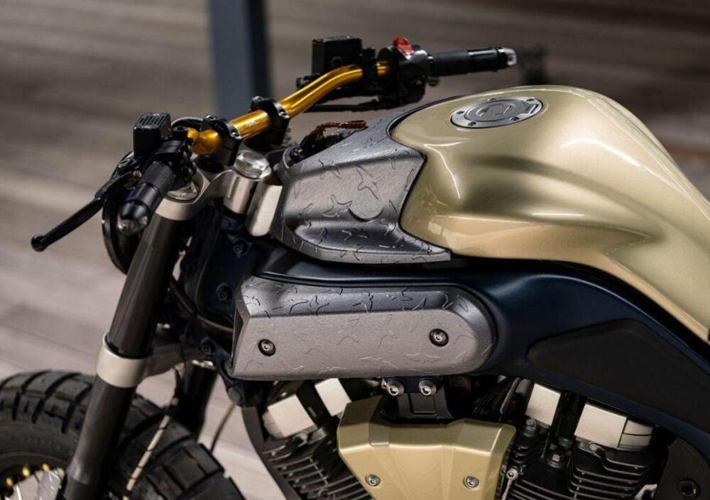 Tanto lavoro artigianale ha prodotto una moto a metà strada tra una scrambler e un'aggressiva naked postatomica, ancora più caricata in avanti della moto d'origine, che avrà certamente soddisfatto le richieste dell'appassionato che l'ha commissionata richiedendo una moto “marziale e brutale”.