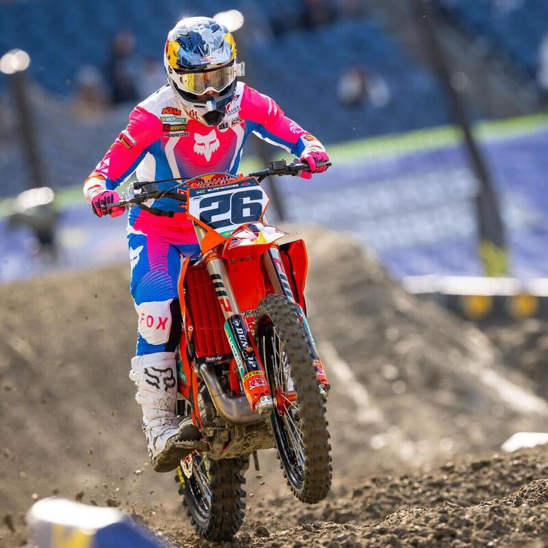 Nella 450 a vincere è stato Eli Tomac, che dopo due anni di assenza dal Lumen Field torna al successo. Considerando le edizioni saltate, con quella del 2026 salgono a tre le vittorie nelle sue ultime tre apparizioni a Seattle. Una prestazione da veterano: calcolatore, metodico, preciso. Sulla KTM sembra perfettamente a proprio agio.