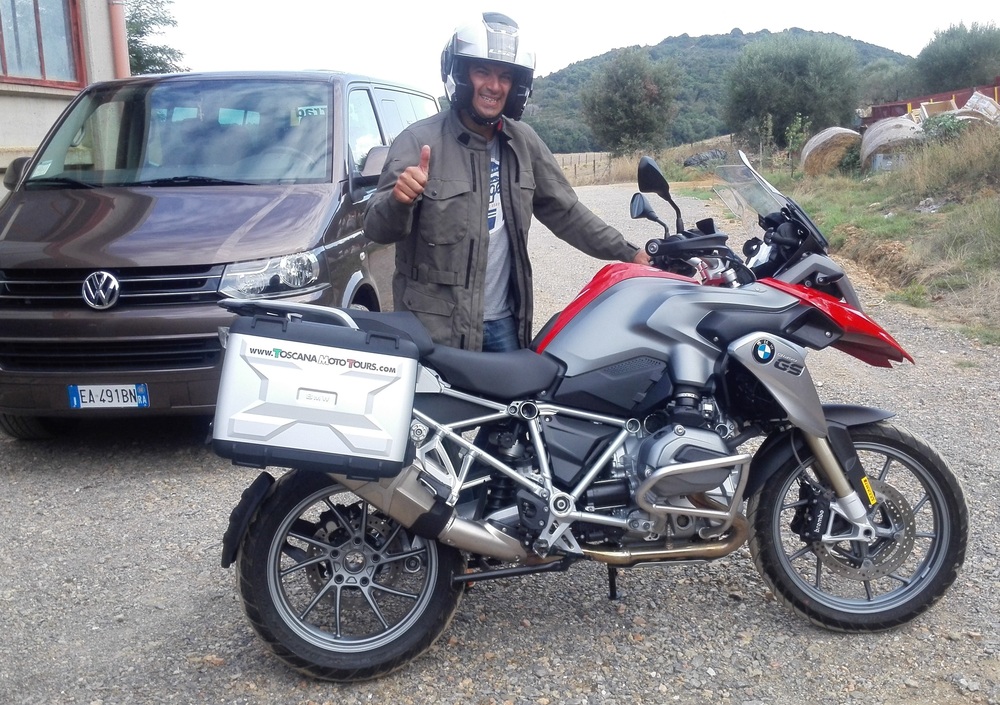 Il nostro Casuccio, rientrato a Follonica dalle sue meravigliose figlie gemelle, non è stato però con le mani in mano e ha affiancato alla sua precedente attività imprenditoriale un’altra sfida. Si chiama Toscana Moto Tours ed è la nuova società di promozione turistica e noleggio moto con base a Follonica. Il livello è sicuramente premium e prevede l’impiego di BMW R1200GS 2015, l’eventuale alloggio presso l’agriturismo Cerrosughero e la disponibilità del van della struttura per trasportare i clienti.
