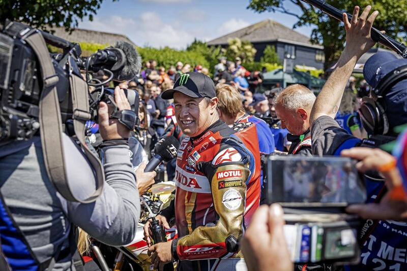Dovevate vederlo: erano passati pochi minuti dalla fine del Senior TT 2022 e il grandissimo John McGuinness - che aveva appena ottenuto un nono posto, dopo il quinto nella gara delle Superbike - aveva risposto alla mia domanda su cosa avrebbe fatto nel 2023 ribadendo che con una moto competitiva sarebbe stato anche lui della partita dall'alto del suo palmares da oltre 100 partenze al Tourist Trophy condite da 23 vittorie di cui 16 insieme a Honda. John è un vero monumento delle road race e indiscutibilmente un pilota che ha fatto la storia moderna delle gare sull'Isola di Man, iconicità che Honda ha peraltro voluto sottolineare dedicandogli una - meravigliosa - versione speciale e limitata della CBR1000RR-R Fireblade.