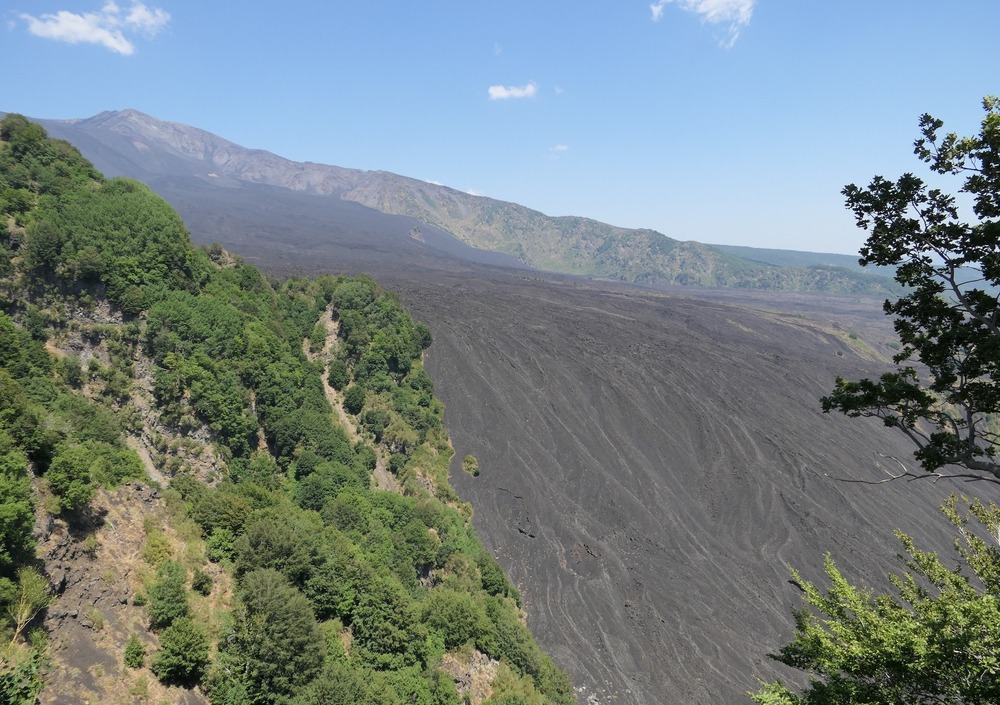 Ripresa la moto, si riparte lungo la SP92 verso un luogo che permette di capire meglio cosa voglia dire “colata lavica”. Svoltando a sinistra, dopo le indicazioni per Monte Pomiciaro si giunge ad uno stupendo punto di osservazione sull'immenso, e provvidenziale, serbatoio naturale che è la Valle del Bove, dove si percepisce pienamente la vastità delle aree sommerse dalle eruzioni nel corso dei secoli. L'ultima massiva eruzione ad aver trovato sfogo proprio nella Valle del Bove è quella del 1991-93 che arrivò a poche centinaia di metri dall'abitato di Zafferana Etna, nostra prossima tappa.