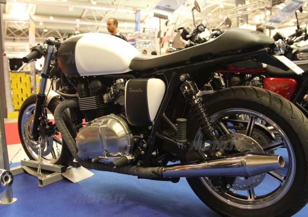 Come promesso, Triumph ha portato - oltre naturalmente al resto delle novità 2013 - due splendide special su base Bonneville e Bonneville T100 realizzate in esclusiva per il mercato italiano in serie limitatissima (50 esemplari ciascuna). Non è purtroppo presente nello stand la Special Edition per la naked sportiva Speed Triple, che arriverà non prima di aprile.