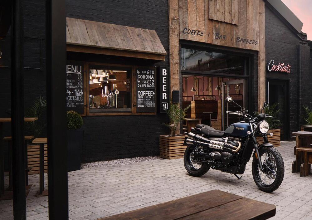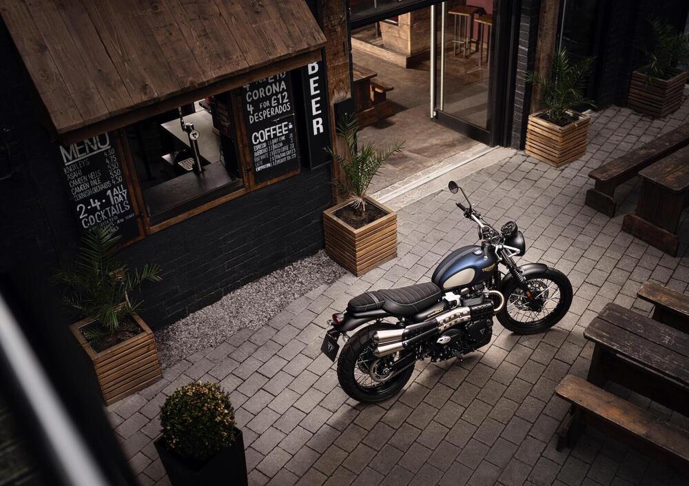 La Street Scrambler, nella versione Gold Line, è caratterizzata da un serbatoio in Matt Pacific Blue con banda Graphite, e ovviamente badge Triumph color oro sul serbatoio. Il filetto dorato, realizzato a mano, è lungo l’incavo del serbatoio spazzolato e la banda centrale. I parafanghi sono in Matt Jet Black, i pannelli laterali vantano il nuovo logo Street Scrambler dorato. Come optional sono disponibili parabrezza e parafango anteriore alto in tinta Matt Pacific Blue.