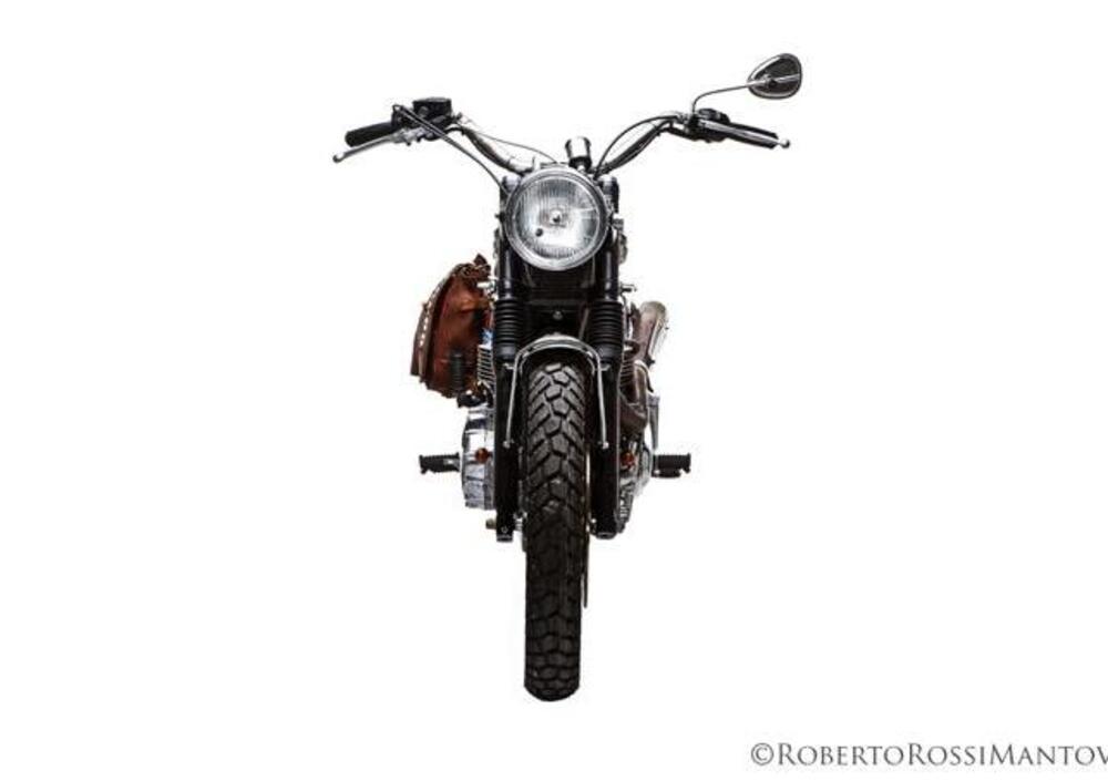Realizzata intorno a una Bonneville T100 è un omaggio a un marchio storico come Triumph. “Rivale”, una Bonneville dall’aria un po’ vissuta, rugged, come piace a Roberto Rossi, che nella sua ciclistica spartana, nella sella e nei particolari ci fa respirare un’aria “scrambler”. Il telaio è stato tagliato, il serbatoio è vintage, conservato da una vecchia Triumph e adattato al nuovo alloggiamento. Si notano poi alcune