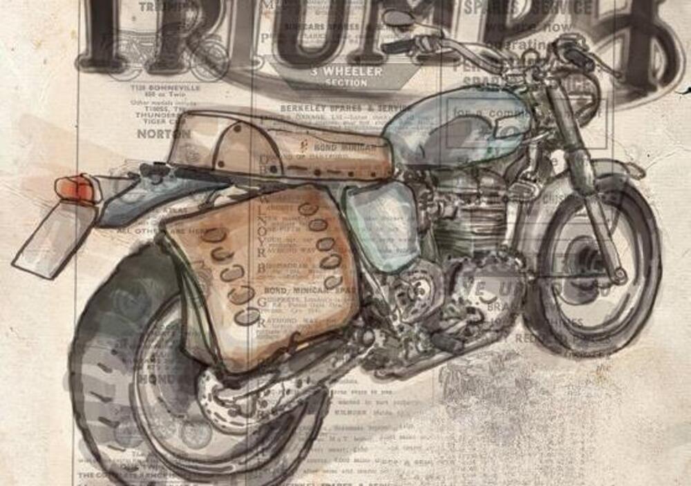 Ciò che conquista, sono i fianchetti, dipinti a mano, a pennello, da Ettore “Captain Blaster” Callegaro. La più bella delle frasi: Gave shape to this notable British Motorcycle Model. E Roberto Rossi l’ha fatto. In amicizia, e per tutti i “Friends Of Triumph“.