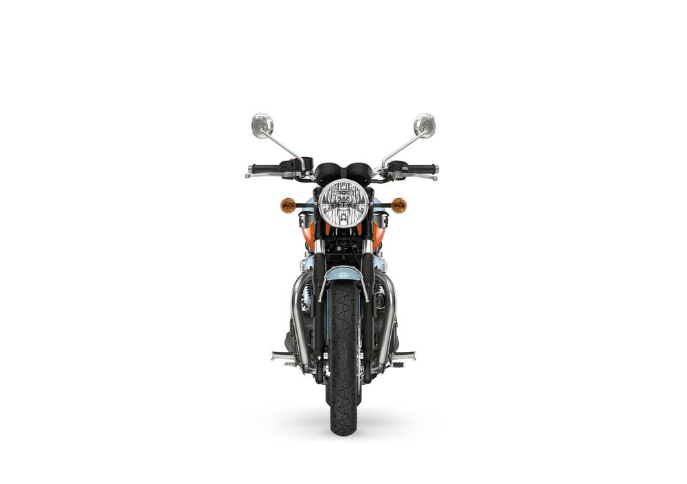 La Bonneville T100 verrà offerta nell’immancabile Jet Black, nella raffinata livrea Carnival Red e Fusion White oltre alla nuova rivisitazione del tipico schema cromatico risalente al 1959, Meriden Blue e Tangerine con dettagli del serbatoio rifiniti a mano.