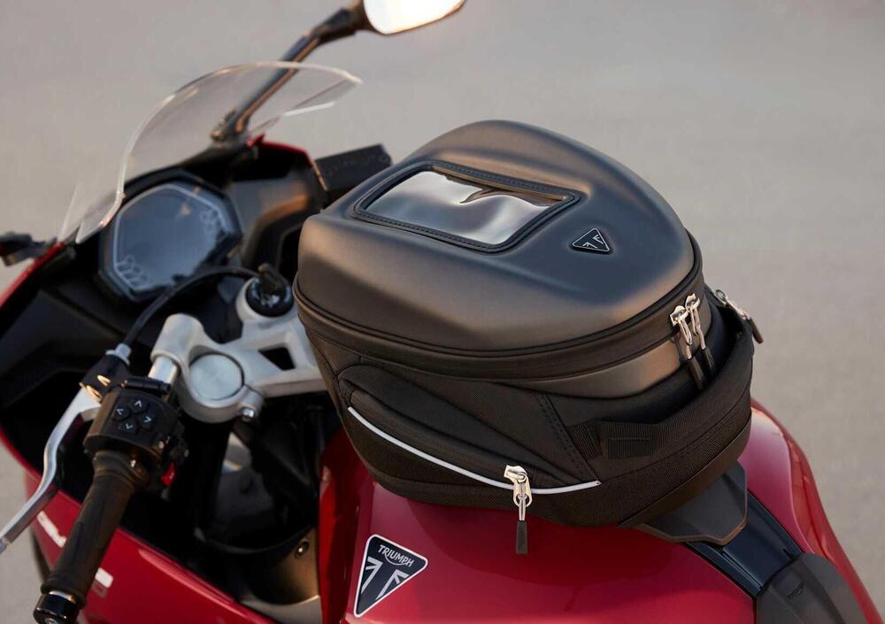 Per chi invece desidera aggiungere dotazione in chiave comfort, predisposizione ai viaggi e sicurezza, sono disponibili il sistema di connettività My Triumph consente di impostare il navigatore turn-by-turn, utilizzare il telefono e ascoltare la musica , manopole riscaldabili, una presa USB sotto la sella e il sistema di monitoraggio della pressione dei pneumatici. Sono disponibili anche una borsa da serbatoio e una posteriore, per un totale di 20 litri, oltre al sistema di allarme Triumph Protect+ e il localizzatore Triumph Track+ con monitoraggio 24 ore su 24, 7 giorni su 7.