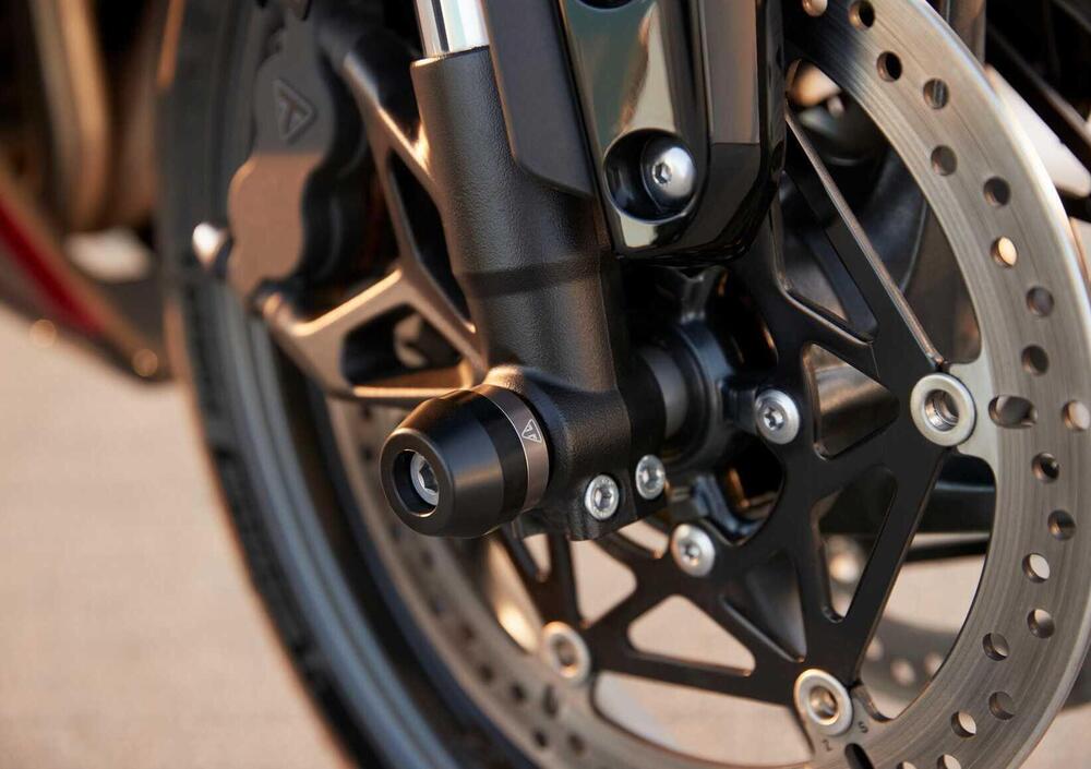 Tra quelli di stampo racing segnaliamo il codino monoposto in tinta, oltre a una serie di parti speciali lavorate dal pieno; è inoltre possibile aggiungere il Triumph Shift Assist, il quickshifter bidirezionale.