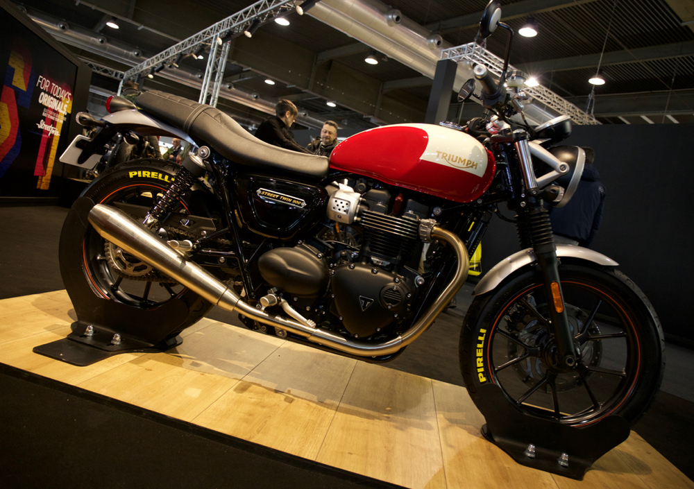 Ma la vera protagonista dello stand Triumph è la special allestita su base Street Twin realizzata il collaborazione con Pirelli per celebrare la collaborazione tra i due marchi e omaggiare due marchi come Phantom e Bonneville. La Triumph Street Twin by Pirelli presenta la livrea utilizzata dal modello Bonneville nel 1977, anno di nascita delle Pirelli Phantom Sportscomp, con alcuni elementi di personalizzazione grafica come il mitico logo Pirelli “Scudetto e Stella” sul parafango anteriore e il disegno del battistrada del Phantom Sportscomp sul serbatoio.