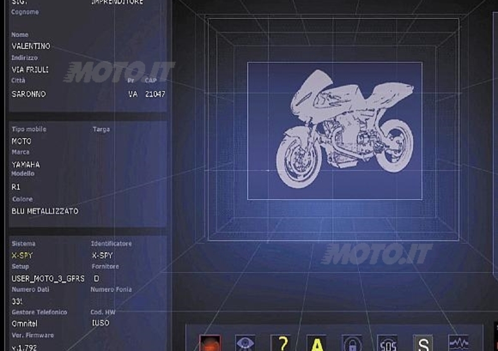 Una centralina di piccole dimensioni montata a bordo della moto consente di rimanere sempre in contatto con il proprio mezzo. La tecnologia GPS e la comunicazione GPRS/GSM consentono di sapere sempre dove si trova la nostra moto e la proteggono dal furto.