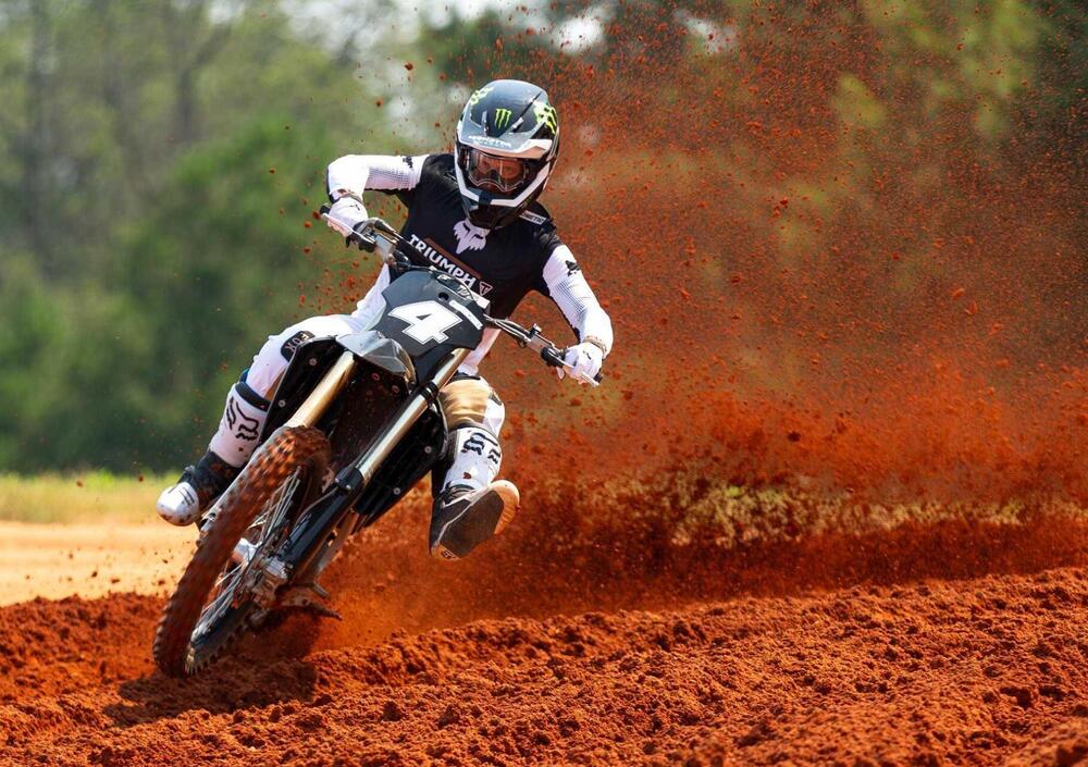 Triumph Motorcycles svela oggi l’ultimo capitolo della serie ‘Vision to Reality’. Lasciato lo studio, finalmente la nuova moto da cross inglese accende il motore. A guidarla uno dei più grandi campioni di motocross e supercross di tutti i tempi, Ricky Carmichael. The Goat (come lo chiamano negli USA) sale in sella per una sessione di test: protagonista è la Triumph MX 250.