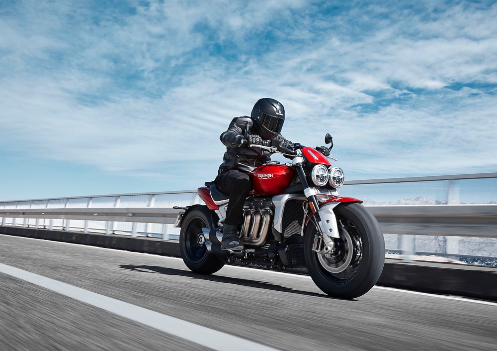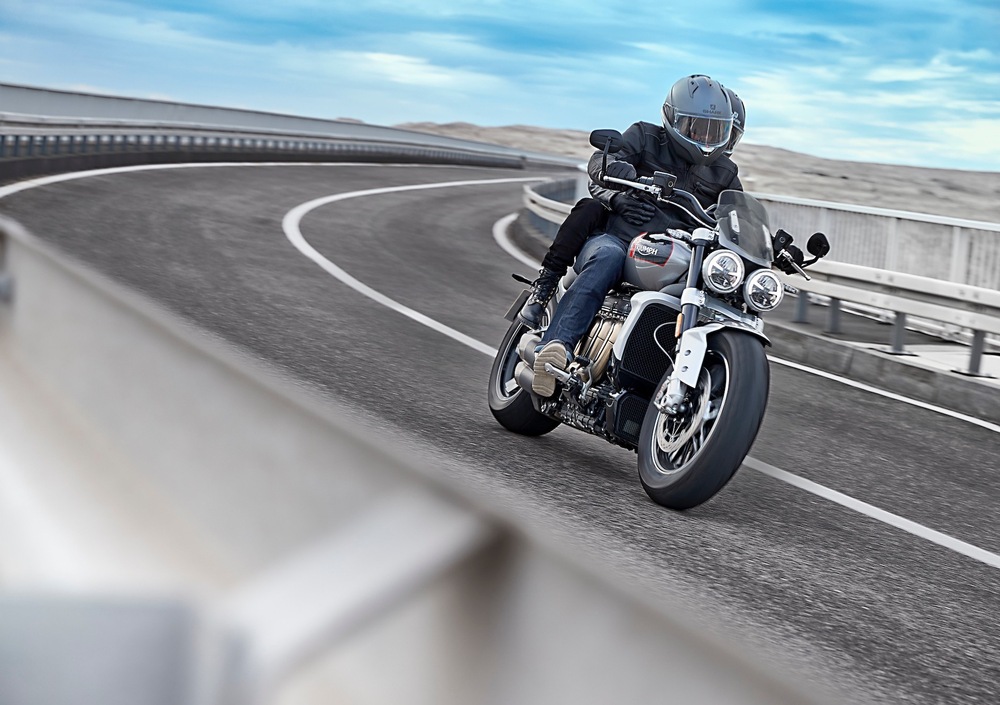 Lo è perché la Rocket 3 R, sebbene alleggerita di 40 kg rispetto al modello precedente, pesa pure sempre oltre tre quintali in ordine di marcia. La super prestazione si deve al suo maxi motore a tre cilindri in linea trasversale da 2.458 cc e capace di una coppia massima 22,5 kgm a 4.000 giri oltre che della potenza di 167 cavalli a 6.000 giri.