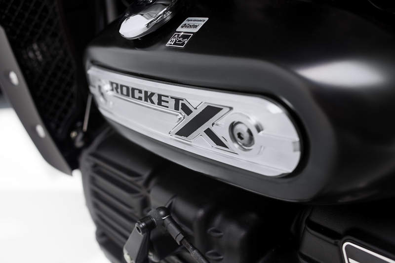 Ciascuno dei 500 esemplari in edizione limitata avrà pannelli laterali numerati e un logo esclusivo. Per conferire alla moto un senso di solidità ancora maggiore, il logo Rocket X sul serbatoio dell’olio è in alluminio ricavato dal pieno e lavorato con una fresatrice CNC per ottenere una finitura unica e inconfondibile.