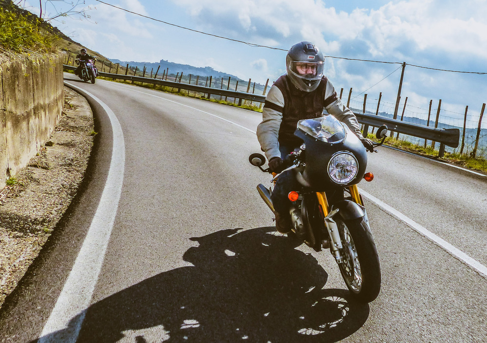 La notizia è che a metà ottobre c'è stato un raduno, il Triumph Sicilia in Tour: due giorni a zonzo per il centro dell'isola percorrendo strade storte fino al Castello di Sperlinga e Sant'Angelo Muxaro, finendo all'Autodromo della Valle dei Templi per il battesimo in pista (con parata iniziale annessa) di chi senza questa - veramente lodevole e, anzi, coraggiosa - iniziativa di Triumph Sicilia non avrebbe mai portato la propria inglesina tra i cordoli. Bizzarrie del caso, chi scrive è anche stato il prescelto per fare da apripista.