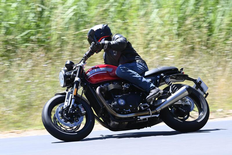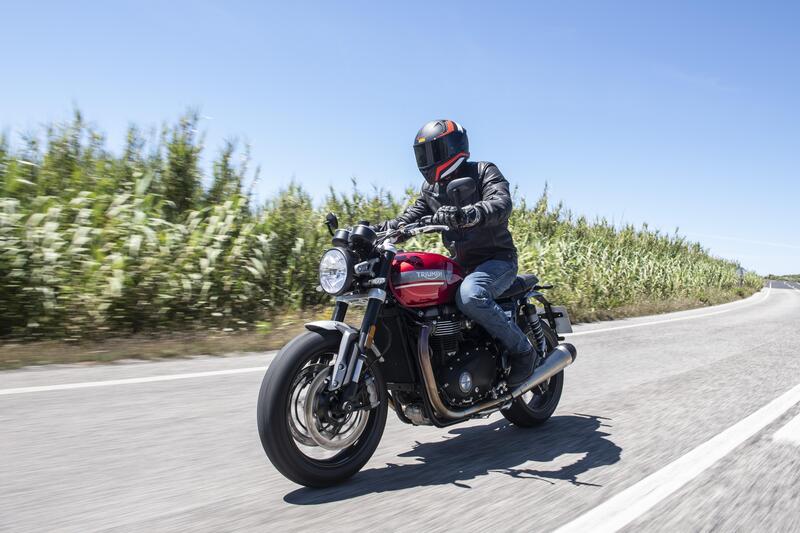 Come abbiamo visto prima, sono principalmente due le grandi aree sulle quali si è intervenuti: motore e avantreno, con risultati in linea con quanto si erano prefissi i tecnici Triumph. La nuova forcella vanta un'avvertibile maggiore rigidezza rispetto alla precedente, ma la taratura (non regolabile) resta di compromesso per accontentare comfort e dinamica che rimane nel solco di quella del precedente modello nonostante le modifiche alla geometria: la manegevolezza continua a essere una delle migliori qualità e nella guida allegra la moto si inserisce in curva facilmente, sostenuta dalle sospensioni che lavorano in perfetto accordo tra loro. Nel misto, la traiettoria impostata viene tenuta con rigore e - alle velocità che i limiti e il buon senso concedono su strada - la luce a terra è più che abbondante, circostanza nelle quali la moto è molto intuitiva; soltanto alzando il ritmo, e portando la Speed Twin su un terreno per il quale non è concepita, la guida diventa più impegnativa, i trasferimenti di carico accentuati, il gioco si fa per pochi e spicca il notevole grip offerto dalle Metzeler Racetec RR, mai in crisi di aderenza e sincere; tra l'altro, continua a non sentirsi la necessità di una gomma posteriore di sezione maggiore che probabilmente renderebbe meno rapidi i cambi di direzione, contesto in cui il lavoro di alleggerimento interno del motore fa sentire i suoi benefici.