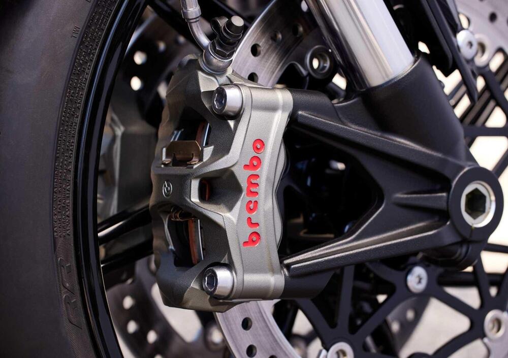 Nel reparto frenante il doppio disco anteriore da 320 mm è morso da nuove pinze Triumph ad attacco radiale e gli pneumatici di primo equipaggiamento sono i Metzeler Sportec M9RR (120/70 e 160/60 le misure). Nella dotazione notiamo il nuovo display LCD/TFT circolari, che consentono la compatibilità con la navigazione turn-by-turn e la connettività telefonica, oltre a racchiudere una comoda presa di ricarica USB-C.