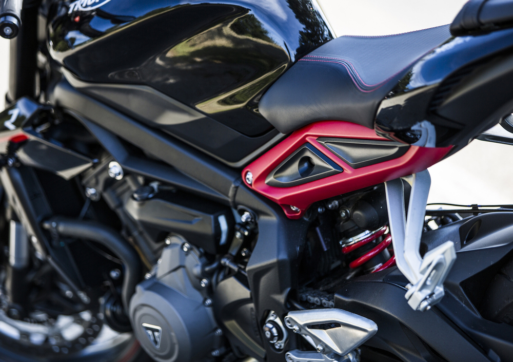 Risultati ottenuti, quelli sopra riportati, con 80 componenti completamente nuovi: albero, pistoni, bielle e contralbero, ma anche canne dei cilindri, distribuzione, condotti di aspirazione e scarico e, naturalmente, le misure caratteristiche (78 x 53,4mm) cresciute sia nell’alesaggio che nella corsa. Già nella basica versione “S” potenza e coppia crescono nettamente rispetto al modello precedente; la R, grazie ad un albero motore dedicato, cresce nella potenza del 13%, mentre la RS cresce addirittura del 16% nella potenza e del 13% nella coppia, rispetto alla Street Triple precedente.