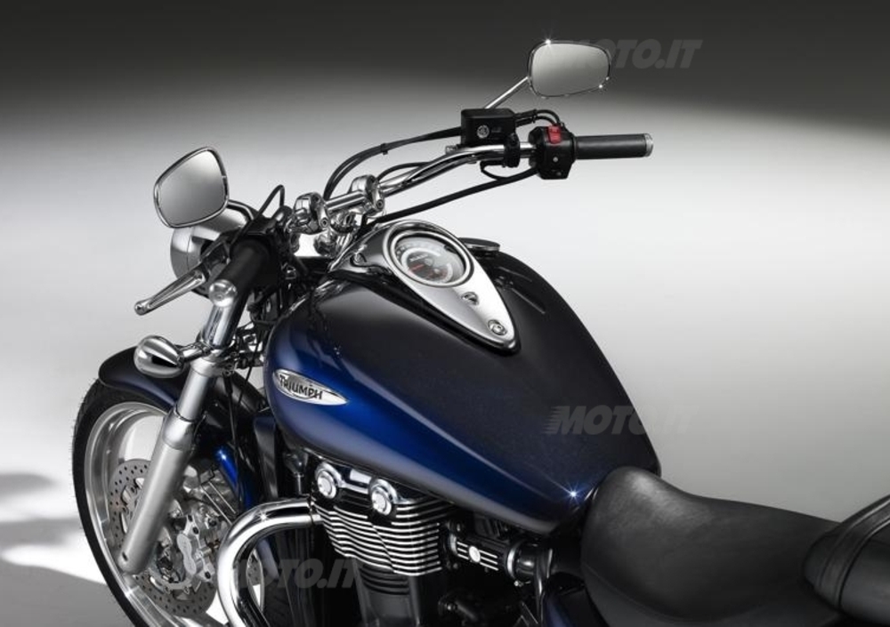 La verniciatura è realizzata a mano dai tecnici Triumph direttamente nella fabbrica di Hickley e contiene una componente altamente brillante che giocando con le sfumature, consente di osservare un passaggio senza soluzione di continuità dal nero profondo ad un vibrante blu o rosso.