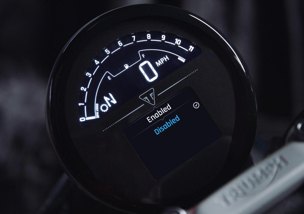 Tutto nuovo anche il faro anteriore, con un nuovo proiettore a LED da 7" con il logo Triumph riportato all'interno della parabola. Tecnologia full-LED anche per il faro posteriore e per gli indicatori di direzione con disattivazione automatica, che il catalogo optional propone anche in versione scrolling con attivazione progressiva. Fra gli altri optional vale la pena di segnalare le manopole riscaldabili, la presa USB nel vano sottosella e l'allarme.