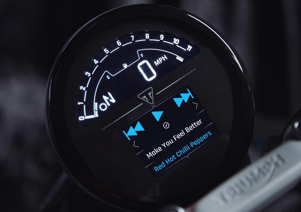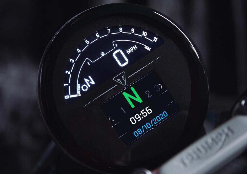 Anche a livello di finiture, come ottima abitudine del nuovo corso Triumph, la Trident 660 si percepisce a un livello superiore rispetto a quello che si associa alle medie entry level: la strumentazione è stata realizzata espressamente per questo modello, ed è costituita da un doppio display misto TFT a colori/LCD white-on-black. Lo strumento, che si può naturalmente integrare con l'app My Triumph Connectivity System (optional) supporta navigazione turn-by-turn, interfaccia di controllo GoPro, integrazione smartphone e musica tramite connessione Bluetooth tramite i blocchetti elettrici a manubrio.