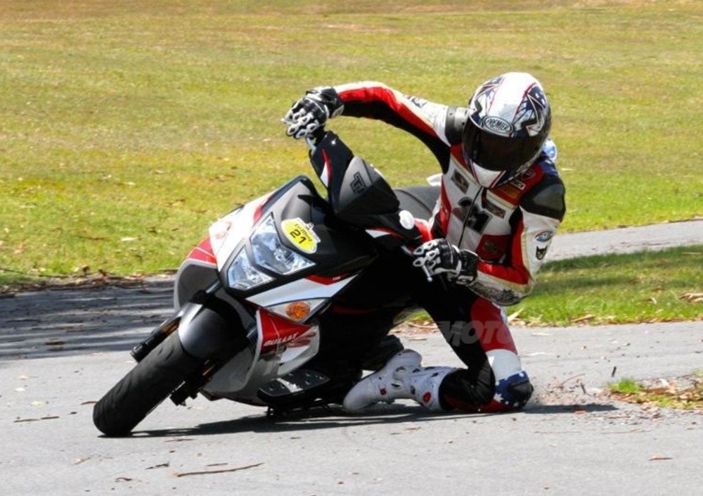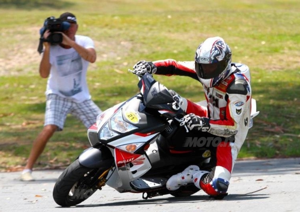 Ogni volta che Troy Bayliss prova un mezzo a due ruote lo spettacolo è garantito, sia che si tratti di una moto di grossa cilindrata o di un semplicissimo scooter. Questa volta le foto pubblicate dallo stesso Bayliss, sulla sua pagina Facebook, lo ritraggono durante una sessione di prova in sella a un piccolo cinquantino ginocchio a terra. Troy dovrebbe prendere parte l'8 e il 9 dicembre alla 24 ore Scooterthon Le Minz, una gara di durata dove tutto il ricavato sarà devoluto in beneficenza.
