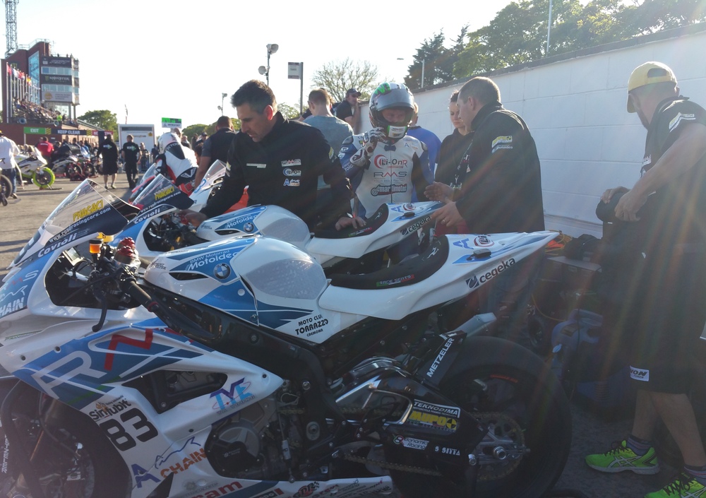 Ultima giornata di prove, Marco è emozionato e concentrato sulla sua moto, la S1000RR con cui correrà qui al TT la Superbike e la Senior