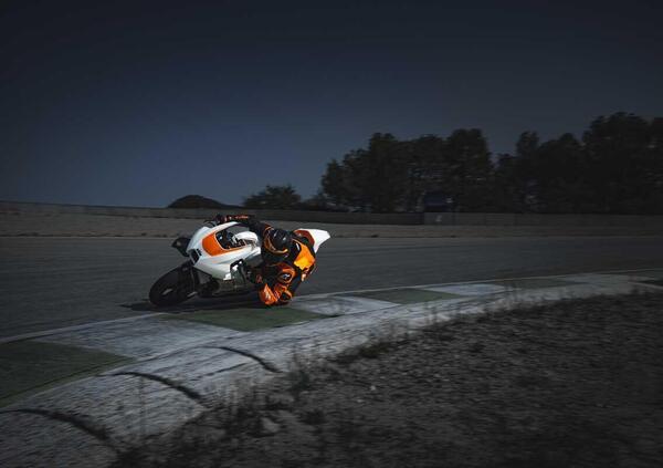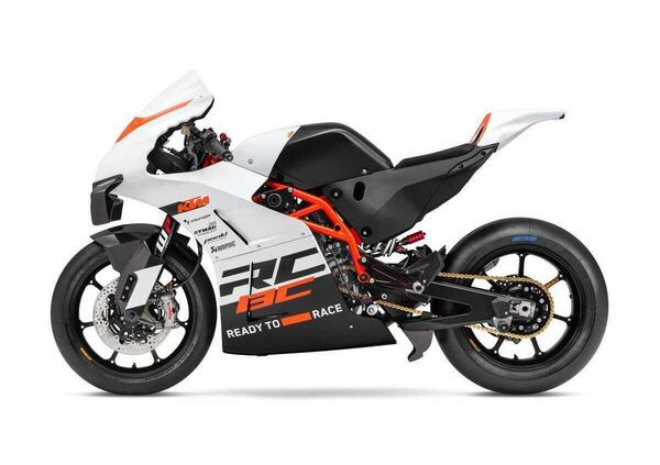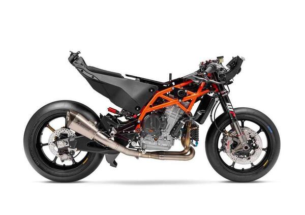 Realizzata in stretta collaborazione con Krämer Motorcycles, la KTM RC 8C 2024 ha carene a sgancio rapido in Kevlar e carbonio ispirate alla KTM RC16 da MotoGP. All’interno troviamo il motore bicilindrico parallelo LC8c DOHC a 8 valvole da 889 cm³ e 135 CV montato su un telaio tubolare dedicato in acciaio 25CrMo4, impreziosito da una serie di elementi alleggeriti e accessori WP Pro Components top di gamma. Il serbatoio è posteriore e a sgancio rapido alloggiato tra codone e sottosella, le ruote sono Dymag con peso extra light e gli pneumatici sono slick Pirelli.