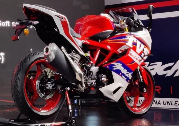 TVS Motor ha presentato in India la nuova versione della sua supersportiva Apache RR 310. La moto - destimata al mercato locale - è spinta da un monocilindrico di 313 cc e 34 cavalli di potenza massima e 27 Nm di coppia che è strettamente derivato dall'unità montata sulla serie BMW G310, quella che TVS produce da sempre per conto della marca tedesca che ne ha naturalmente curato il progetto e il design.