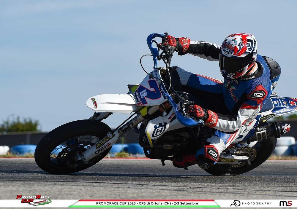 Nella categoria Supermoto Armando Narduzzi del team Napoleoni con il tempo di 1'.05''.161''' conquista la pole position. Molto sicuro del tempo fatto registrare nel primo turno di qualifica Narduzzi sceglie di non prendere parte al secondo turno di qualifiche. Un po’ di confusione in partenza di Gara1 con false partenze e moto leggermente impennate. Narduzzi mantiene però la leadership della gara con Emanuele Alviti del team Norbike che lo segue in seconda posizione. Christian Grava del team SRS Racing occupa la terza posizione ma a causa della penalità di 10'' è Christopher Velocci, del C.F. Racing Team, che ha nelle mani il terzo gradino del podio. Arrivati a metà gara, Grava si fa molto vicino ad Alviti pronto a tentare l'attacco, dietro di lui Velocci e Massimiliano Carlomusto si fanno vicinissimi. A tre giri dalla fine proprio nella bagarre Velocci e Carlomusto incappano in una caduta che provoca la bandiera rossa ed omologa la gara con 7 giri di percorrenza. RISULTATI GARA1 1.Narduzzi 2.Alviti 3.Grava 4.Mezzetti 5.Querci 6.Carlomusto 7.Velocci.
