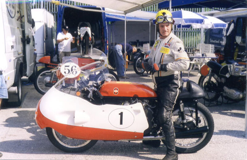 Un ritorno favorito dall'invito di un concessionario Guzzi, che gli offrì la moto e il supporto per partecipare alla 200 Miglia di Imola; invito accettato con entusiasmo e guasconeria cui ebbe seguito però una prestazione sportiva incolore, da ex pilota col casco anni Sessanta e la pancetta. Tuttavia l'ingaggio e i due biglietti di sola andata (per lui e la sua compagna) furono per sua stessa definizione «il più lauto ingaggio mai ricevuto per quello che feci», consentendogli di iniziare la sua seconda vita a Maranello con una attività dignitosa anche se molto lontana dai riflettori di un tempo.