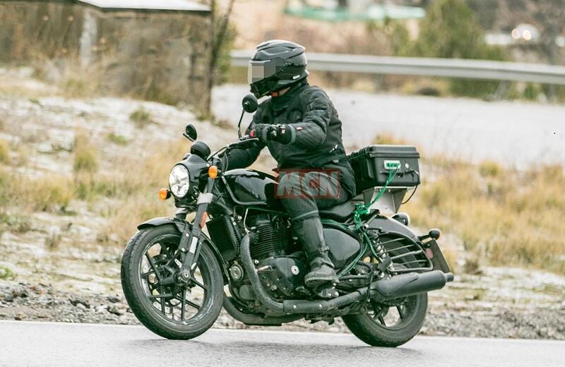 Se poco tempo fa si erano visti dei prototipi che autorizzavano a pensare a una Super Meteor (pedane avanzate in pieno stile cruiser e plexi molto simile a quello installabile sulla Meteor 350) e a una roadster dotata di forcella tradizionale, adesso è il turno di una moto dalle pedane piazzate centralmente (che escluderebbe il segmento cruiser), forcella USD e manubrio basso ritratta in azione. I cerchi sono in lega e non a raggi, il piccolo cupolino potrebbe anche autorizzare a pensare a un'evoluzione della bobber Shotgun già vista in veste di concept a EICMA 2021. Ma è anche in ballo il nome Constellation, registrato da Royal Enfield e che potrebbe annunciare una moto che potrebbe porsi nel solco della Classic 350 ma nella cilindrata di 650 cc.