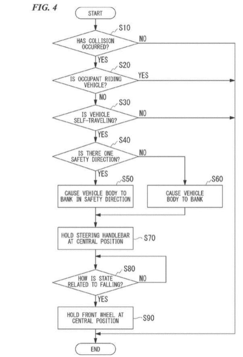 Il brevetto di cui ci occupiamo ora si preoccupa di controllare il comportamento della moto dopo un impatto in modo da limitare i danni.