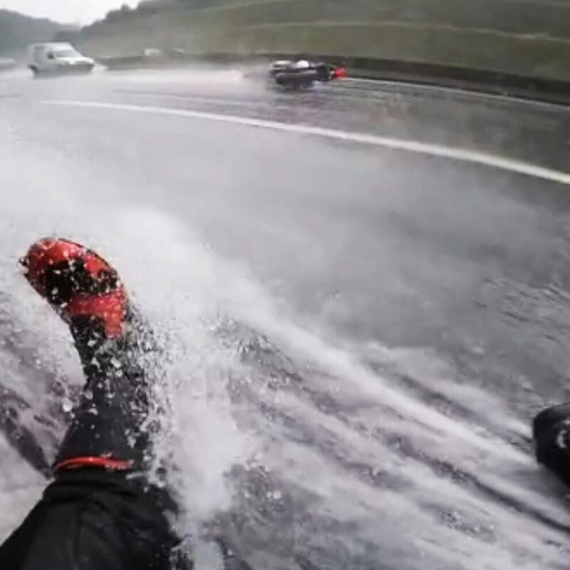 Possiamo avere questo documento grazie a chi ha registrato questo video con mano un po' tremolante e smartphone non di ultima generazione: ma la resa è lo stesso valida. Questi due sulla macchina bianca stanno rischiando un po' troppo.