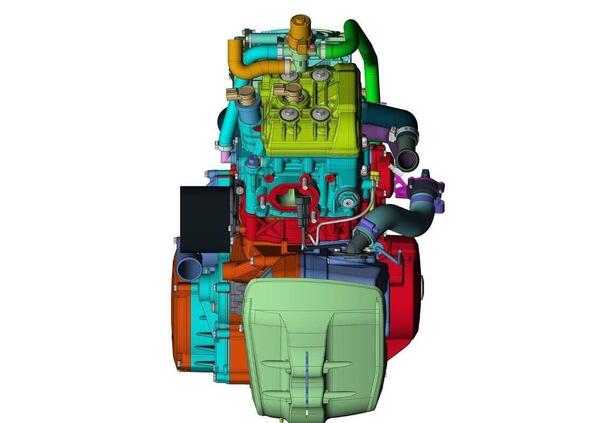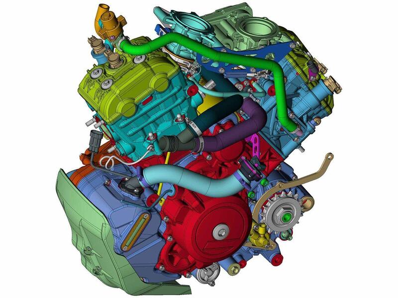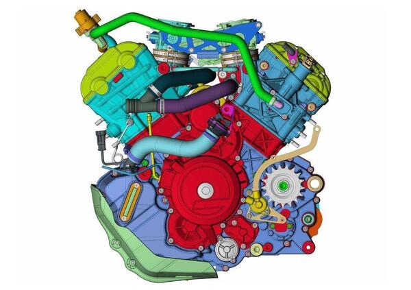 Guardando rapidamente i disegni 3D, la registrazione riguarda la parte esterna, estetica per così dire, si nota una spiccata somiglianza con il V-twin KTM.