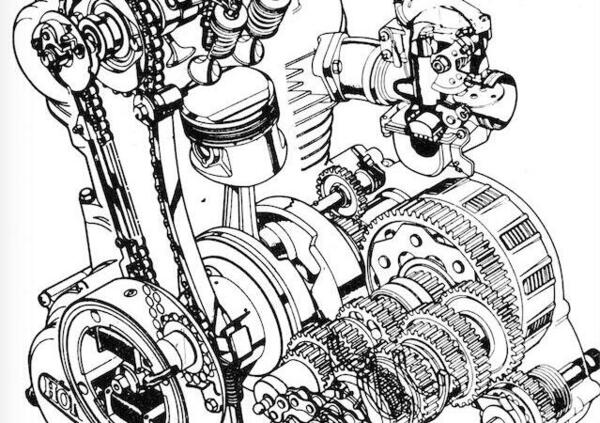 L’albero a gomiti, che aveva le manovelle a 180° ed era formato da cinque parti unite per forzamento, poggiava su quattro supporti di banco e lavorava su cuscinetti a rotolamento. Questa bicilindrica, che per alcuni anni è stata anche protagonista di un vivace campionato monomarca, andava bene ma le vendite sono state inferiori alle aspettative.