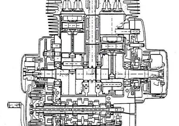 Per la prima volta veniva prodotta in serie una quadricilindrica in linea di altissime prestazioni con raffreddamento ad acqua e catena di distribuzione laterale. Entrambe queste soluzioni sono in seguito state adottate da tutti gli altri costruttori. Il motore era dotato inoltre di un albero ausiliario di equilibratura (mai visto prima, sui quadricilindrici) e la distribuzione era bialbero con quattro valvole di ogni cilindro inclinate di 35° e mosse da bilancieri a dito sdoppiati. La potenza era di 115 cavalli a 9.500 giri/min.